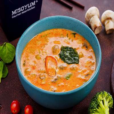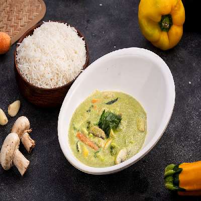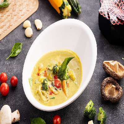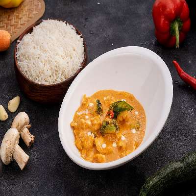 A rich and spicy Thai curry made with a vibrant red chilli paste, coconut milk, and a medley of vegetables and proteins, offering a bold and aromatic flavor experience